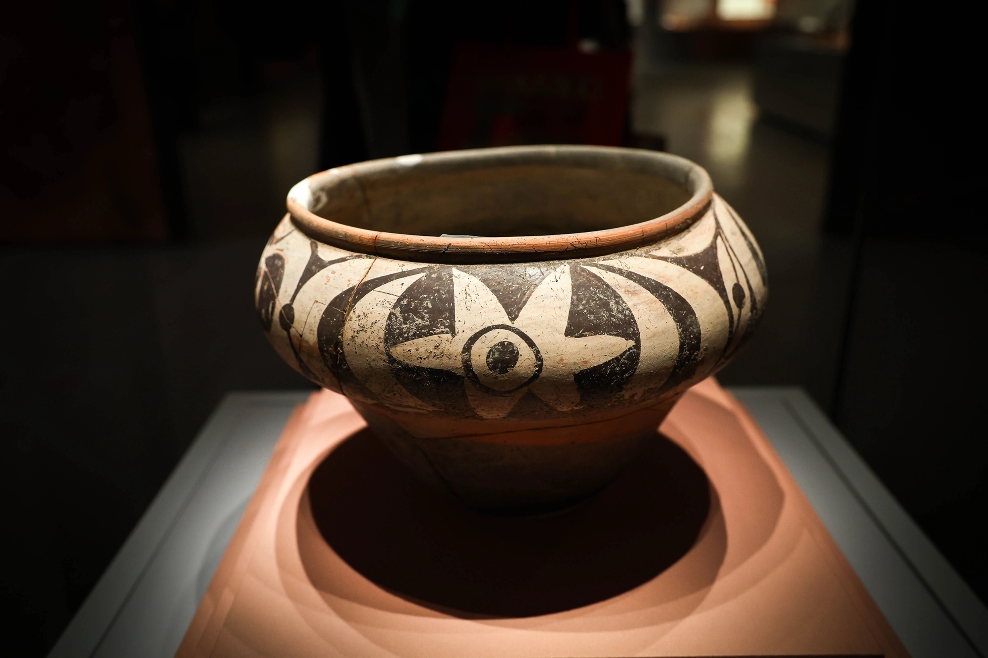 六角星纹彩陶罐,河南巩义双槐树遗址出土