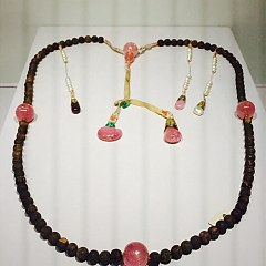 珊瑚十八子手串,由珊瑚、翡翠、珍珠串制而成,故宫博物院藏