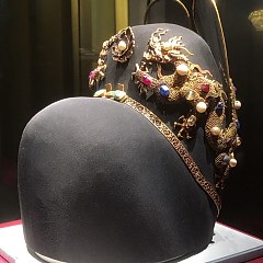 鎏金点翠嵌宝「诰命」龙凤冠,清代