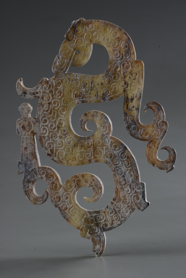 人乘龙形玉佩,战国,荆州博物馆藏