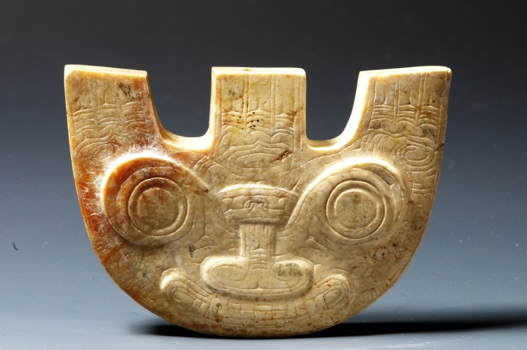兽面纹玉三叉形器,新石器时代良渚文化,浙江省博物馆藏