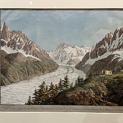 《霞慕尼山谷上方的山脉景观》(View of the mountains above the valley of Chamonix),Christian von Mechel,1790年,手工上色蚀刻版画