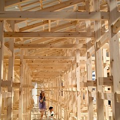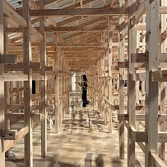 藤本壮介是日本当代知名建筑设计师,建筑作品遍布全球,类型涵盖私人住宅、大学、商业设施、饭店及综合建筑等,代表作品有「武藏野美术大学美术馆及图书馆」(2010,东京)「蛇形画廊展亭」(2013,伦敦)「匈牙利音乐之家」(2021,布达佩斯)。藤本壮介最新的作品是2025年大阪世博会主会场的木造环形回廊。