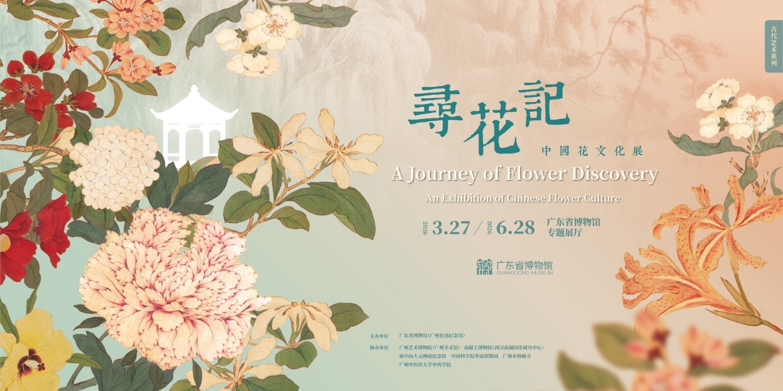 展览分为三个部分,「寻古:花之文明印记」从器物纹样出发,追溯花在中华文明中的物质印记;「觅意:花之精神符号」深入精神层面,解读花作为中华文化符号和精神的内涵;「探境:花之交流见证」梳理岭南花卉文化,介绍花卉在东西方文化交流中发挥的作用。