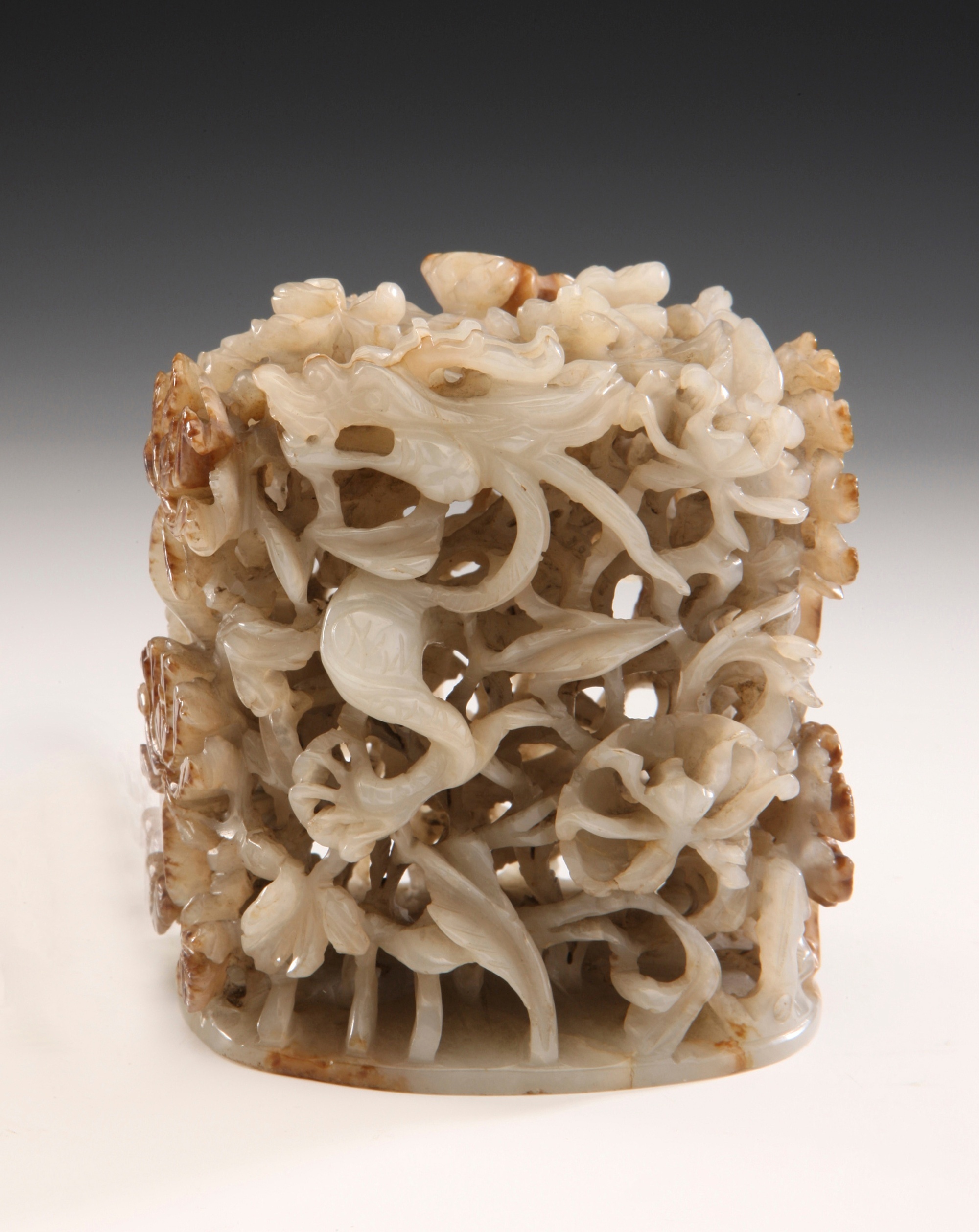 白玉镂雕龙穿牡丹盖钮,元代
