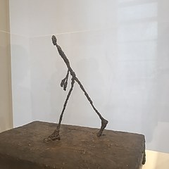 Alberto Giacometti (阿尔贝托·贾科梅蒂,1901-1966)是瑞士现代主义雕塑家和画家,Giacometti 的个人风格确立于1947年,在这之后他多塑造身材细长的人物形象,以视觉艺术的形式表现二战后的存在主义思潮。