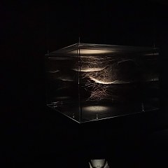 Tomas Saraceno 通过对蜘蛛网进行扫描,重构和重新定义呈现星系,作品中的蜘蛛网由1对桔云斑蛛(Cyrtophora citricola)2周织成、1只摩鹿加云斑蛛(Cyrtophora moluccensis)1周织成。