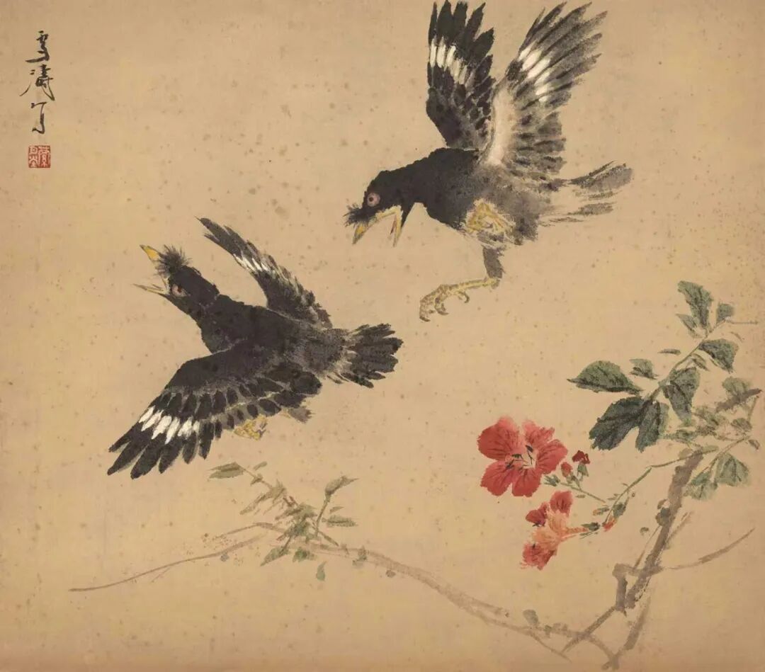 《花鸟册页之九 凌霄八哥》,王雪涛,1964年,王雪涛纪念馆藏