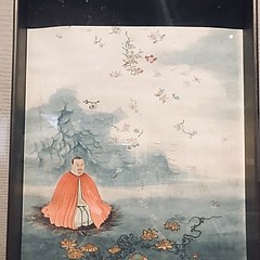《乔莱花雨坐禅图轴》,禹之鼎,清代