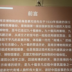 南京博物院的前身是创建于1933年的国立中央博物院筹备处,最初拟建人文、工艺、自然三大馆,1937年因抗战爆发而停建,至1948年仅建成人文馆。该馆由徐敬直设计,后在梁思成、刘敦桢的指导下,修改为仿辽代大殿建筑,大殿古朴庄严、雄浑伟岸,成为南京标志性历史文化景观。