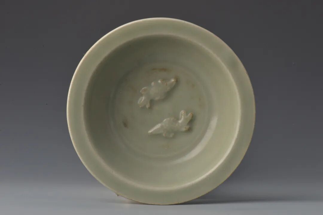 青釉双鱼纹折沿盘,龙泉窑,元代