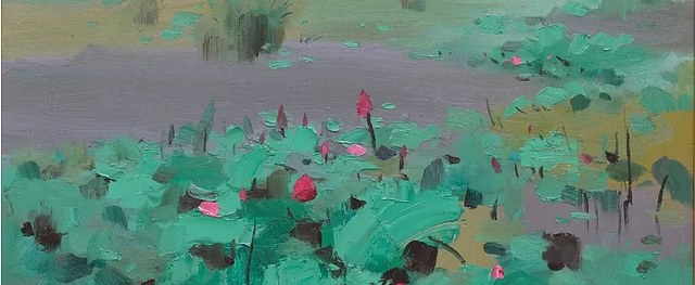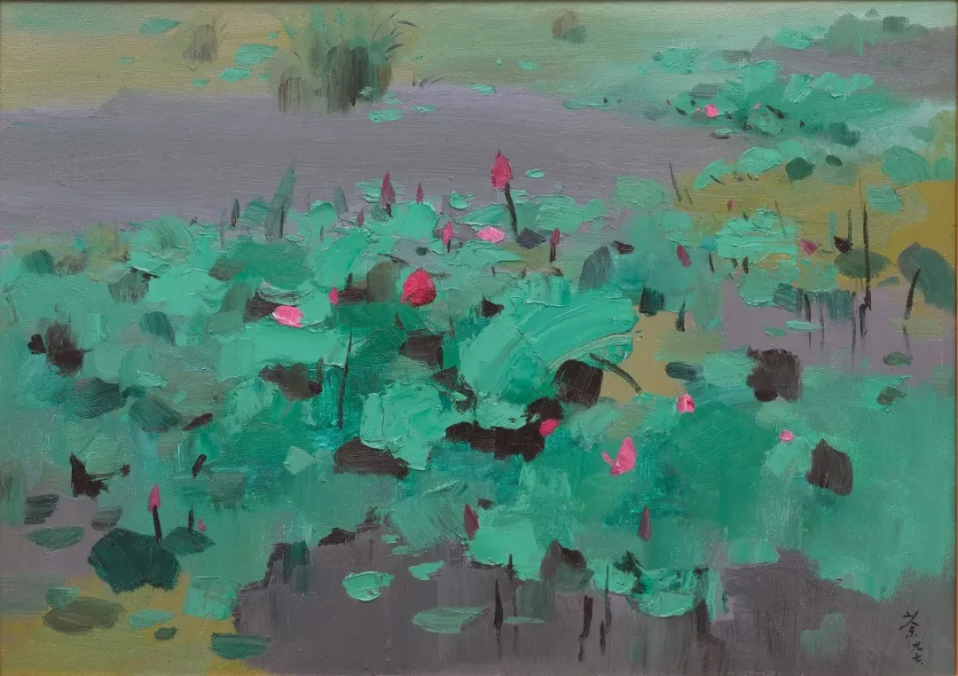 《红莲》,吴冠中,油画,1997年