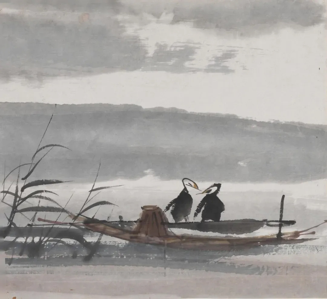 《鱼鹰小舟》,林风眠,中国画,1961年