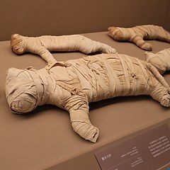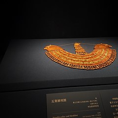 「图坦卡蒙的世界」则以法老图坦卡蒙为线索,探究其所处时代的社会变革与信仰转变。图坦卡蒙(Tutankhamun)是古埃及新王国时期第十八王朝的法老,在位时间为公元前1332-前1323年,死时年仅19岁。图坦卡蒙墓是埃及迄今唯一没有遭盗掘且保存完好的法老墓,被视为20世纪最重要的考古发现之一,墓内出土超过5000件文物,包括图坦卡蒙面具、黄金棺材等。