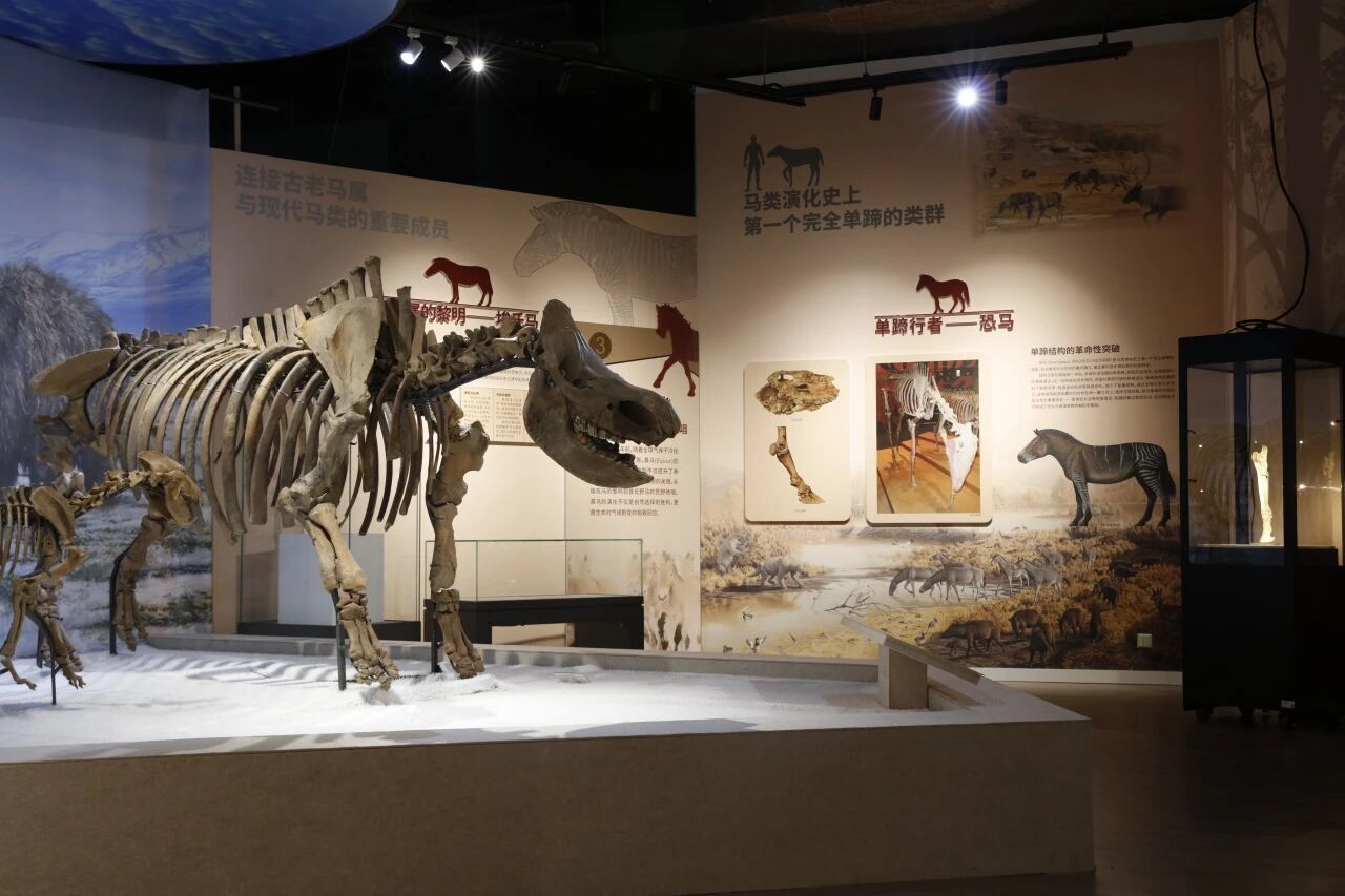 本次展览共呈现展品40余件,涵盖动物化石、仿真动物模型、动物化石模型、马蹄印模型等。展览选取了从始新世开始各个时期最具代表性的马类物种重点介绍,剖析马类演化进程,融合古生物学、地质学及传统文化研究,从科学与文化两个维度讲述马的故事。