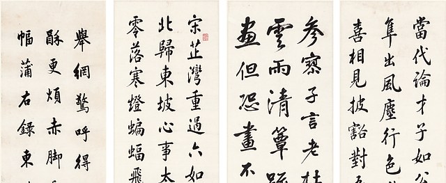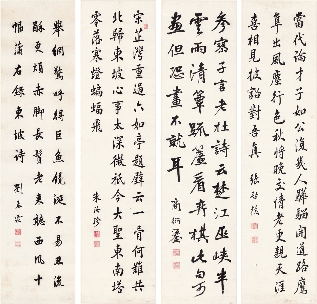 行书屏,刘春霖、朱汝珍、商衍鎏、张启后,清末