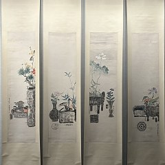「庙堂之高」陈列士大夫阶层的作品,最特别的展品是一件四条屏,由中国最后一次科举考试的前四名刘春霖、朱汝珍、商衍鎏、张启后合作完成,是科举制度终结的实物见证;「江湖之远」关注隐于乡野的书画家和女性艺术家,呈现出更自由多元的创作视角与艺术语言。