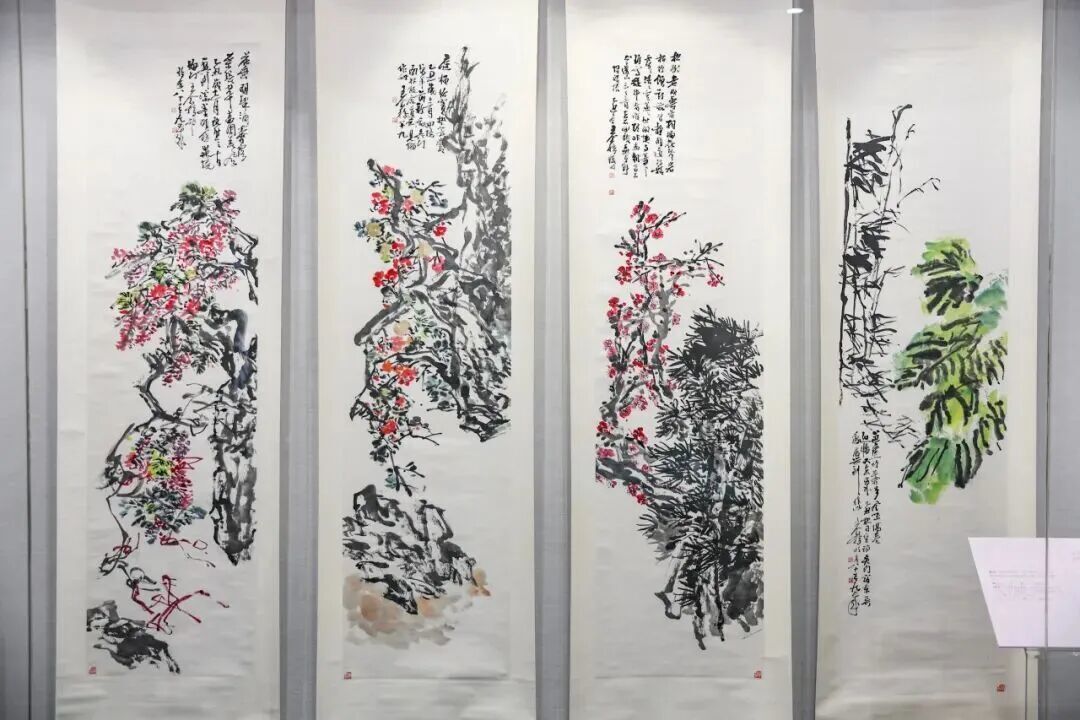 展览分为四个单元。「海上之风」聚焦江海博物馆收藏中极具特色的海上画派书画,包括费丹旭、任伯年、吴昌硕、王个簃等人的作品;「金石之家」展示晚清民国金石学者的创作,他们多兼具收藏家、古文字学者、书法家的三重身份,其作品也融入独特的金石气息,雄浑刚健。