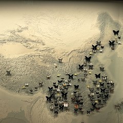 本次展览共呈现数百件蝴蝶幼虫、蛹、成虫标本,通过「蝴蝶的一生」「独特的身体」「自然的一员」三个版块解读蝴蝶的奥秘。展厅内还特别设置相对封闭空间「蝴蝶屋」,展示蛹化蝶过程和多品种蝴蝶觅食、繁衍的状态。