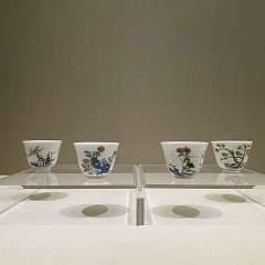 展览中观者可以欣赏到多件精美的官窑瓷器,包括清康熙斗彩鱼藻纹盘、豇豆红釉太白尊、青花斗彩十二花神杯,清雍正仿哥窑天球瓶、青花淡描团菊纹碗,以及清乾隆黄地青花双龙戏珠纹盘、粉彩过墙寿桃纹盘。