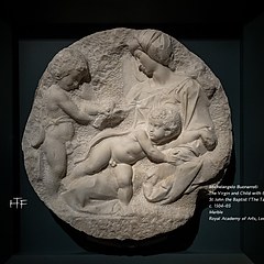「圣母子与圣约翰」圆浮雕(Taddei Tondo),Michelangelo Buonarroti,1504-1505年,大理石,英国皇家艺术协会藏