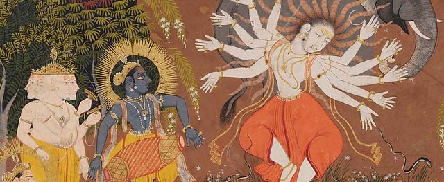 「印度绘画中颜色的象征与美学」板块聚焦颜色的美学功能及其在宗教画和诗意画中的象征意义。观众将学习了解绘画系列作品的选色原则,以及如何借助颜色的类型和数量推断作品的创作地点和年代。本板块还将通过草图和当代作品,揭示印度绘画艺术背后的创作过程。