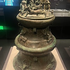 叠鼓形狩猎场面铜贮贝器,西汉,云南昆明晋宁石寨山71号墓出土,云南省博物馆藏