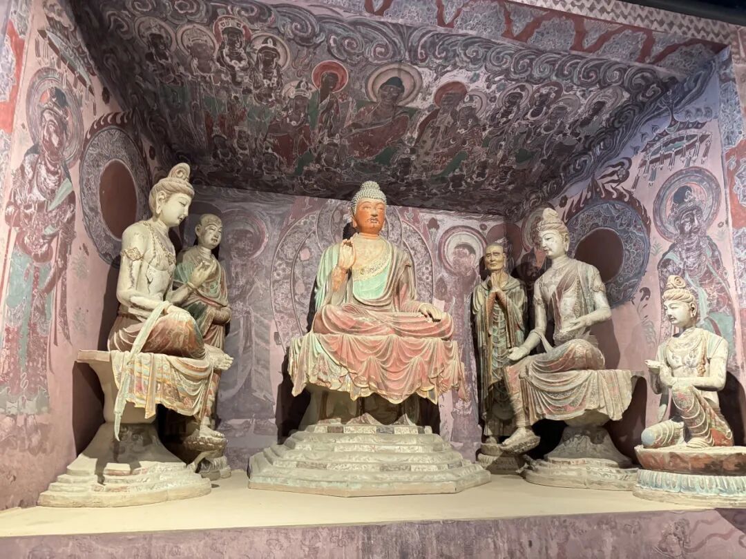 本展还特别呈现来自敦煌研究院的展品,其中莫高窟第328窟官方复制窟(含8尊原比例复制彩塑)为首次在江西展出,另有多件流失海外的敦煌壁画临摹作品是首次在国内集中展示。