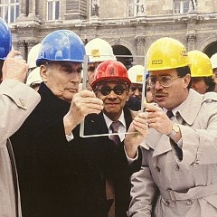 卢浮宫计划(1983-1993)中拿破仑庭院金字塔入口的白天效果图,保罗·史蒂文森·欧雷斯(绘图师),贝聿铭及合伙人事务所,1984年,铅笔纸本