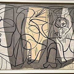 《三名舞者》被认为是现代艺术史上的里程碑之作。这幅画作绘制于1925年,标志着毕加索从古典主义时期到表现主义时期的关键转变。画家用支离破碎的躯体隐喻人物身份的瓦解,以富有情绪张力的扭曲和变形处理手法,表达欢乐与痛苦并存的矛盾情绪,引导观众站在疯狂、哲学与先锋思潮交汇的十字路口,体会现代艺术迎来的新变革。