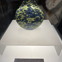 本次展览共呈现辽宁省博物馆收藏的康雍乾官窑瓷器74件(套),以传承与创新为展览脉络,展示官窑瓷器的华贵与精美。重点展品包括清康熙紫绿彩龙纹盘、清雍正青花折枝莲纹盘、清乾隆黄地青花云龙纹宝月瓶等。