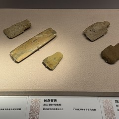 重点展品包括郁南磨刀山遗址与南江旧石器地点群出土的手斧、英德青塘遗址出土的早期陶片、深圳咸头岭遗址出土的石拍、高明古椰贝丘遗址出土的双肩石锛、「南海I号」南宋沉船出水的印花双耳罐及金链等。