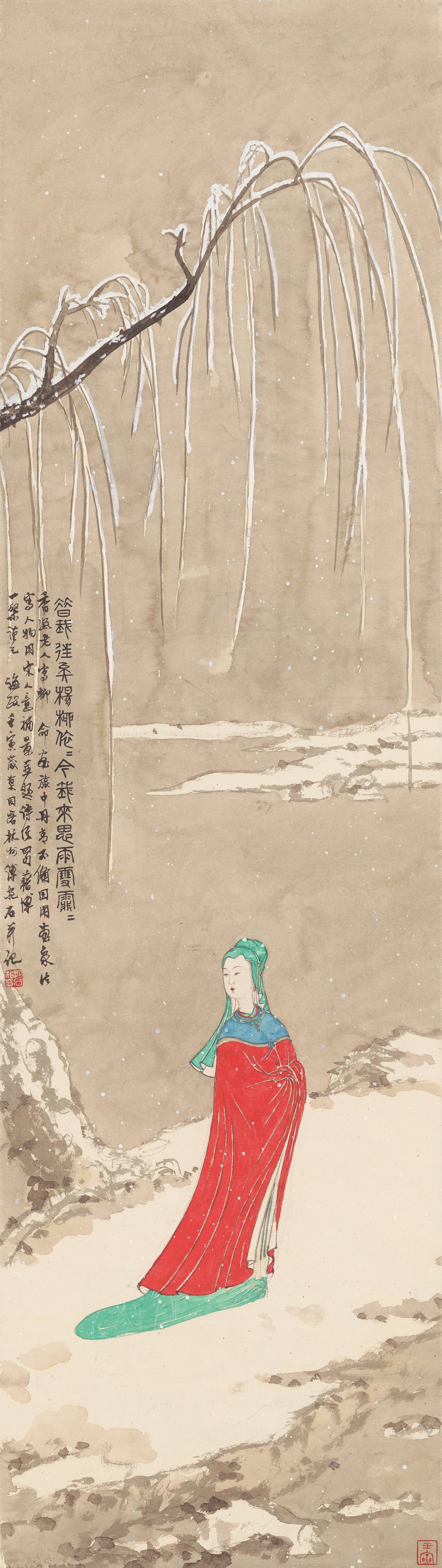 《赏雪图》,何香凝、傅抱石,1962年,设色纸本