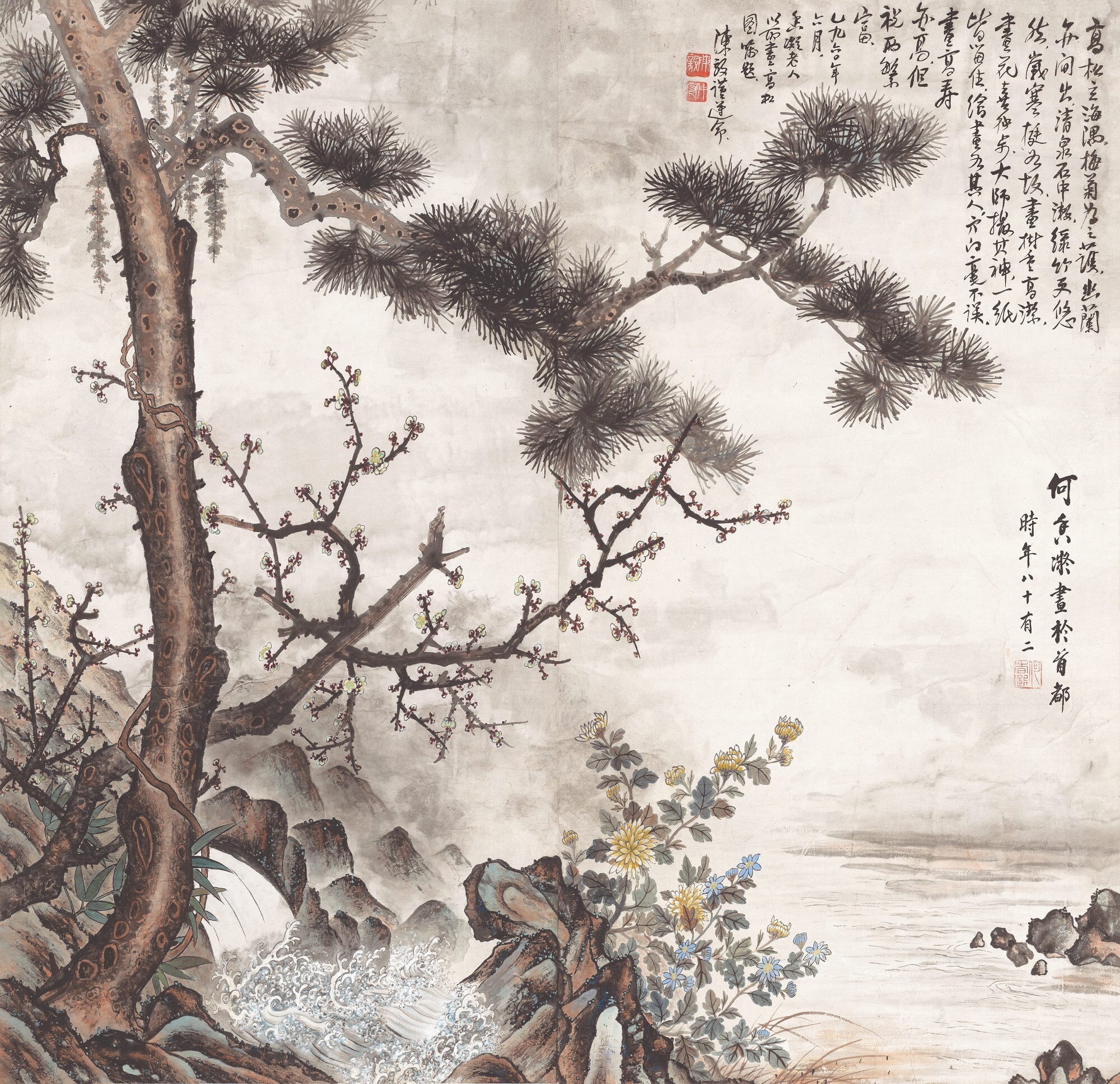 《松·竹·梅》,何香凝,1936年,设色纸本