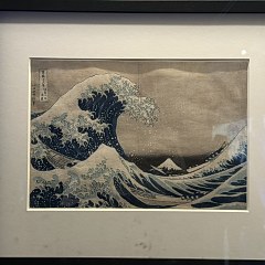 第三个展厅致敬日本浮世绘大师葛饰北斋,展出其代表作《神奈川冲浪里》,同时展出法国/比利时漫画中的《神奈川冲浪里》元素。