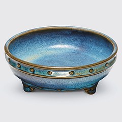明早期 钧窑玫瑰紫釉鼓钉洗