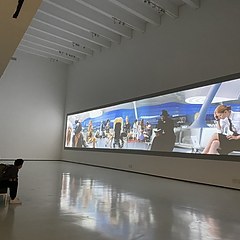 本次展览将展出俄罗斯艺术家组合 AES+F 的2组艺术项目《神圣的寓言》和《颠倒世界》,作品由大型影像装置和数码拼贴技术组成,通过回顾性地自我反思,从心理学角度分别剖析了2010年代初期和中期的人类生存状态。两组展品均为威尼斯双年展参展作品。