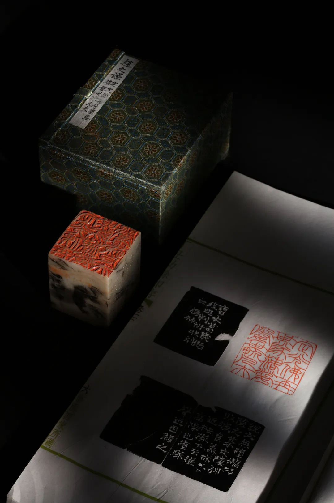 金石雅玩及古典家具展区荟萃金石彝鼎、文房清供、琴器木器及沉香雅玩,不乏流传有序的古董珍品,例如良渚神人纹九节大玉琮曾经端方、山中商会、安思远递藏,亞共祖乙父己卣出自瑞郡王旧藏,篆刻板块亦有赵之谦青田石自用印、《丁丑劫余印存》等重要文物亮相。