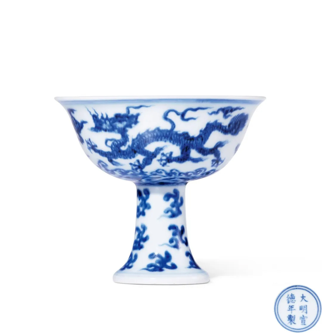 青花云龙纹高足杯,明宣德