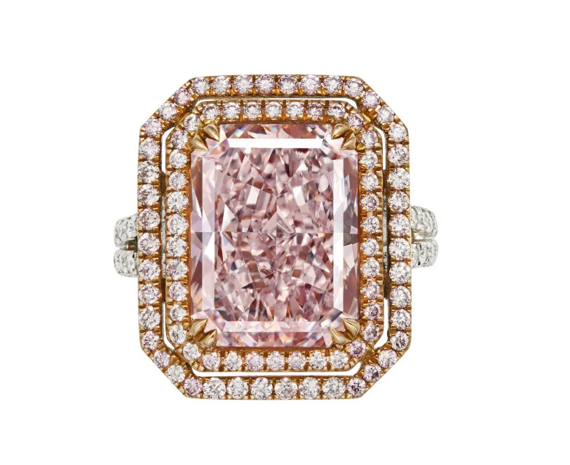 7.62克拉彩紫粉色VVS2净度钻石戒指
