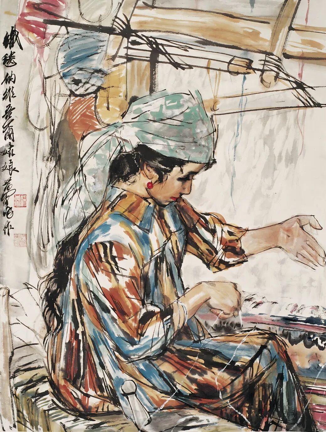 《织花毯的姑娘》,黄胄,1981年