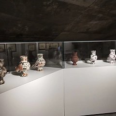 右:「猫头鹰」(WOOD-OWL),陶土花瓶,Pablo Picasso,1968年