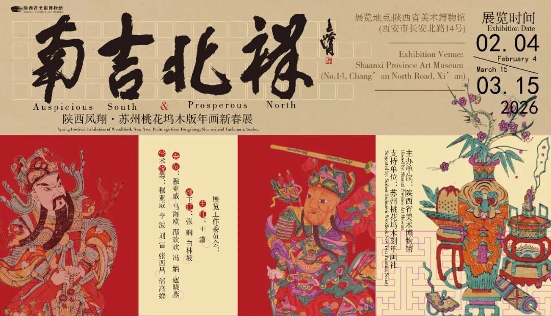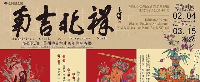 本次展览展出陕西凤翔年画和苏州桃花坞年画共计215件,通过「神威」「祥瑞」「烟火」「社戏」4个主题单元,对比展示、解读两者的异同,呈现中国木版年画的艺术多样性与深厚文化内涵,为观众营造喜庆祥和的春节氛围。