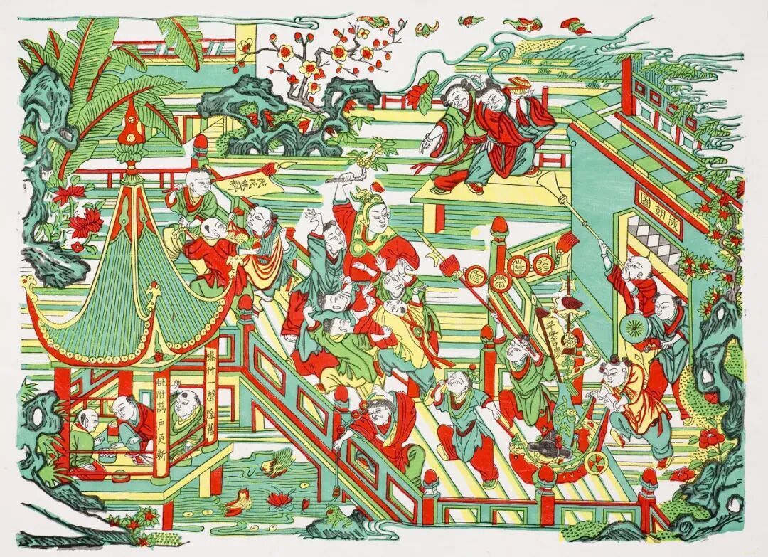 桃花坞年画是江南地区极具代表性的民间木版年画,因曾集中在苏州桃花坞一带生产而得名。桃花坞年画色彩绚丽,刻工精细,具有秀雅的江南民间艺术风格,技法上得益于明清两代江南繁荣的文人书画艺术。