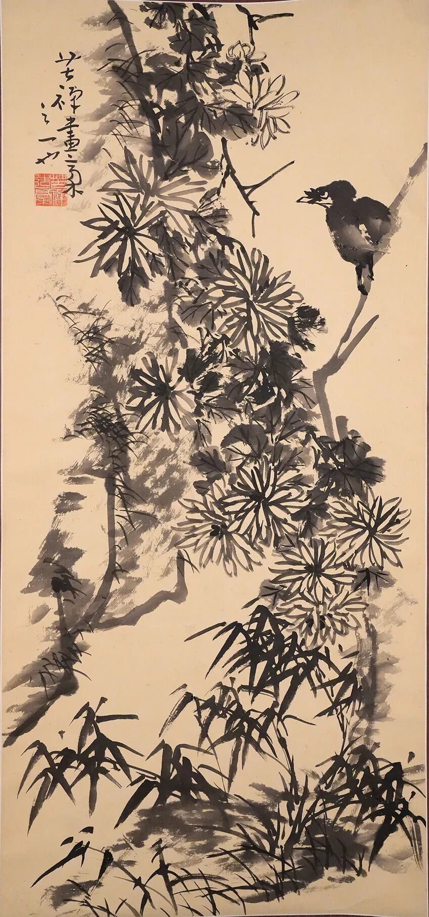 李苦禅(1899-1983)是中国现代国画家、美术教育家,青年时期师从徐悲鸿学习油画,1923年成为齐白石的第一位入室弟子。李苦禅对齐白石的学习不仅局限于技法,更注重学习其艺术思想,因此齐称赞他「人也学吾手,英也夺吾心」。