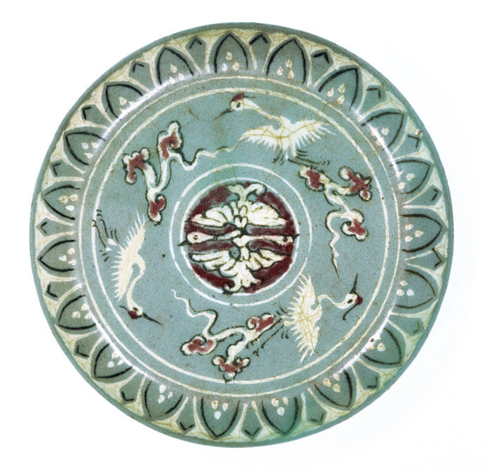 青瓷镶嵌辰砂云鹤纹盒,朝鲜半岛,高丽时代