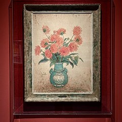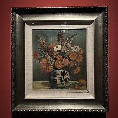 展出作品年代跨越20世纪中叶至今,亮点展品包括潘玉良《青瓶红菊》、周碧初《秋波双亭》、罗中立《喝水的农民》、王劼音《秋色》等。