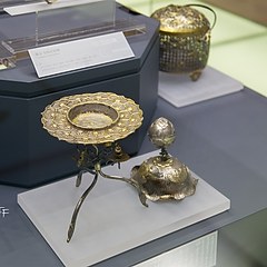 此次展出的唐代皇家茶具1987年出土于陕西扶风县法门寺地宫,是由宫廷造办机构「文思院」制作的御用茶器,被唐僖宗作为供奉品深埋于地下。这组茶器体现唐代宫廷茶宴的礼仪规范,它所蕴含的工艺、质地、规格等也折射出大唐宫廷茶道的风貌。