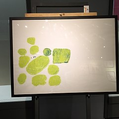 展品《菠萝》的创作者是一名精神分裂症患者,画面由无数色彩无序的粗短线条构成;《激情》由一名焦虑症患者绘制,混乱的线条和具有冲突性的色彩,传达了创作者的心声。
