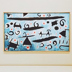胡安·米罗,西班牙画家、雕塑家、版画家、陶艺家,与毕加索、马蒂斯齐名的20世纪重要艺术家,超现实主义的代表人物。他的创作风格经历了从野兽派、现实主义、超现实主义的变迁,以强烈的色彩、想象力和诗意著称。